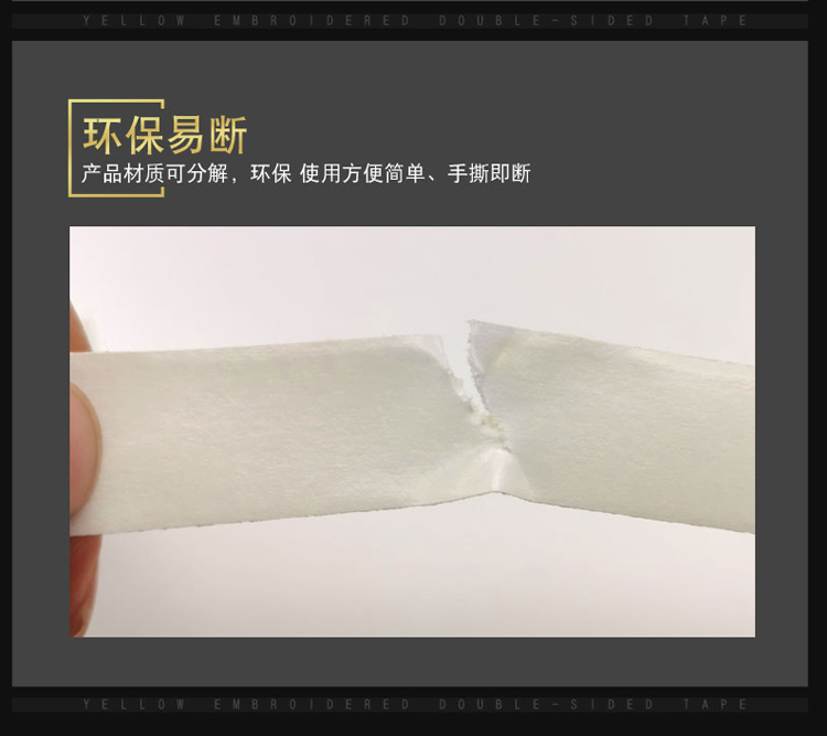 1、無紡布基材雙面膠的粘性及加工性較好,一般長(zhǎng)期耐溫可達(dá)到70-80℃,短期耐溫可達(dá)到100-120℃,厚度一般大約為0.08-0.15MM,適合于銘板,塑膠之貼合,汽車,手機(jī),電器,海棉,橡膠,標(biāo)牌,紙品,玩具等行業(yè),家電和電子儀器零件組裝,顯示屏鏡片。